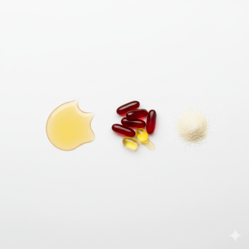 Vitamin E is a clear to pale yellow oil that is slightly viscous but very light. It has almost no odor and blends easily into skin or hair products. Its feel is smooth, slightly tacky at higher concentrations, and it leaves skin soft, hydrated, and protected against moisture loss without greasiness.